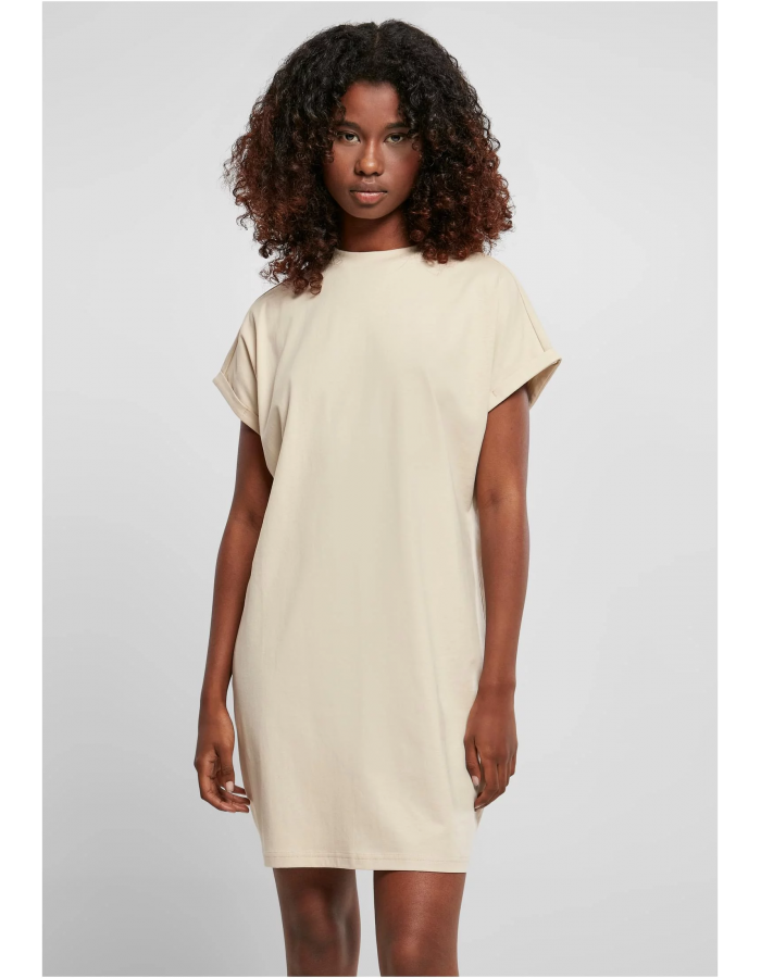 Atraktivní minišaty se svěžím letním vzhledem, chytrými detaily a neobvyklým znakem na zádech s logem Urban Classics přecházejícím přes ramena a s přechodovým vzhledem v duhových barvách. Látka šatů je bavlna šetrná k pokožce a má odpovídající barvu. Akcenty dodává pohodlný volný střih, mírně zvýšený žebrovaný výstřih a zkrácené krátké rukávy s manžetami. Díky sedlu vzadu je zajištěno optimální padnutí šatů.