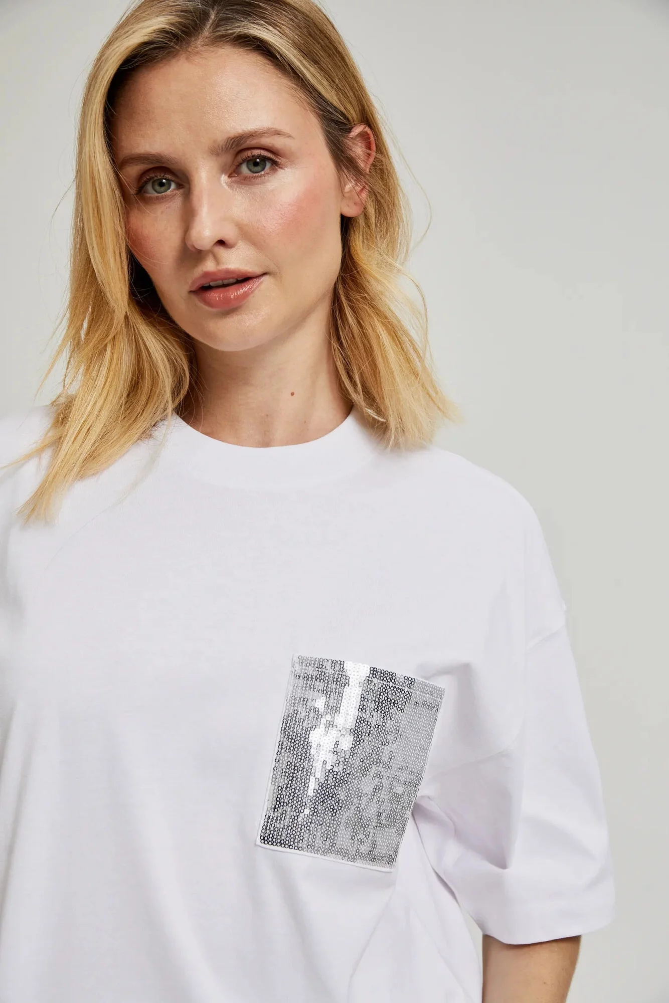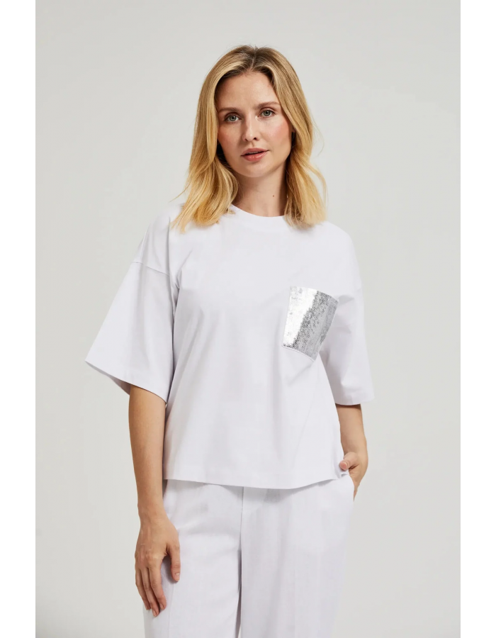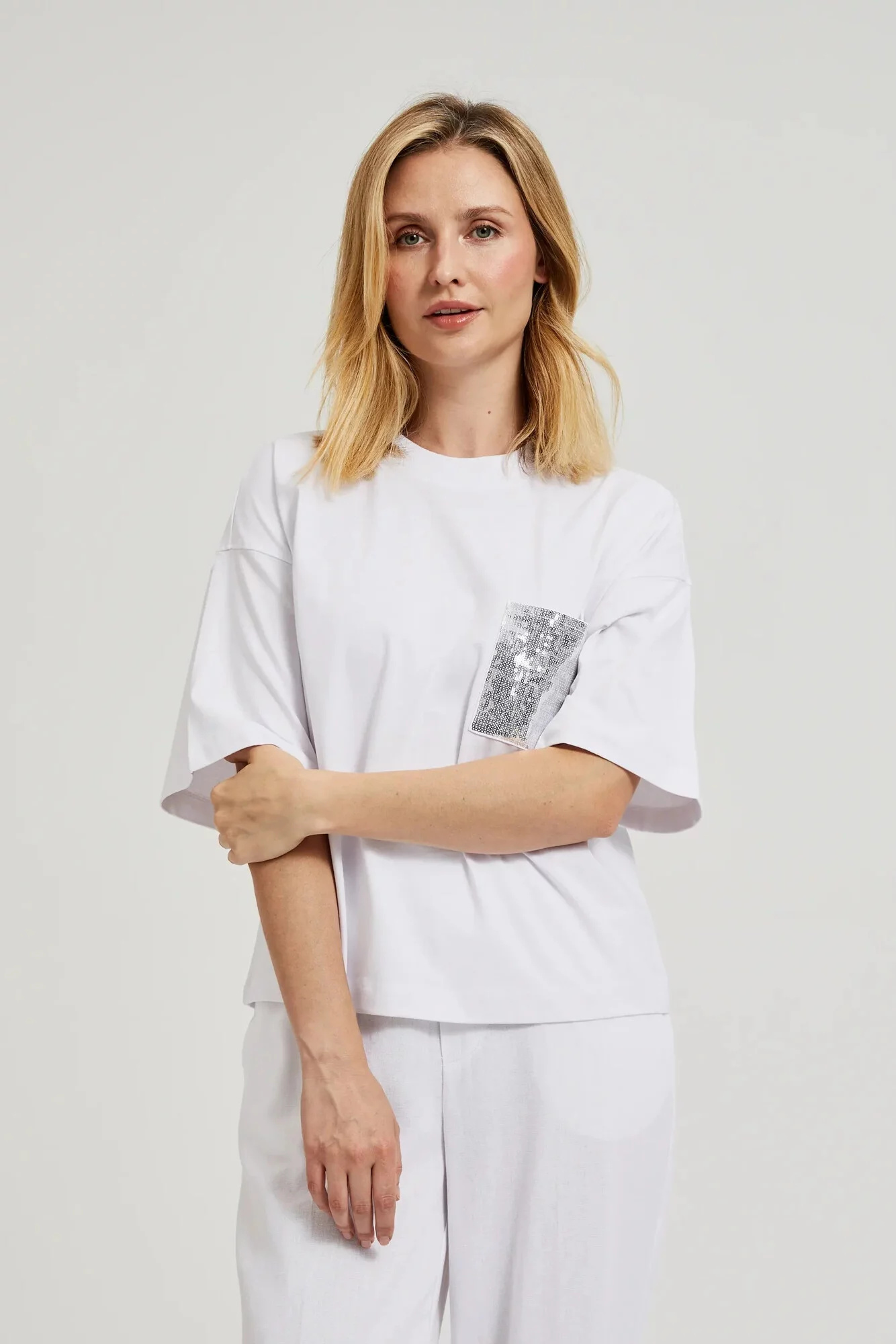 Dámské tričko s flitry MOODO - bílá Velikost: s