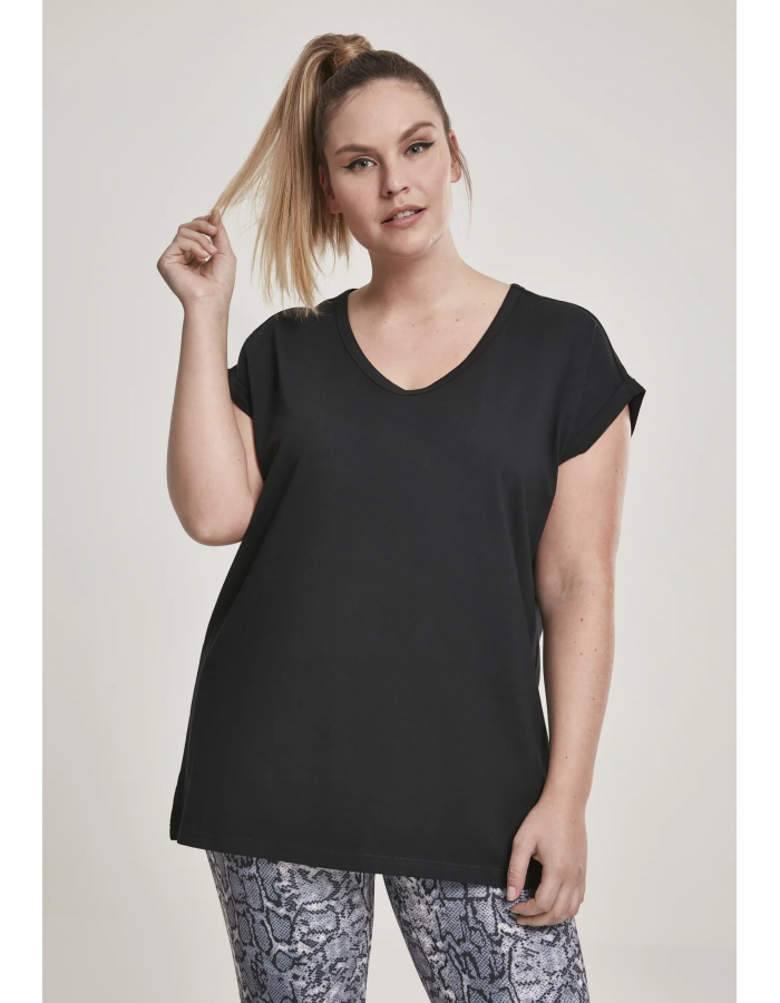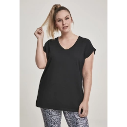 Dámské tričko s kulatým výstřihem do V s prodlouženým ramenem černé