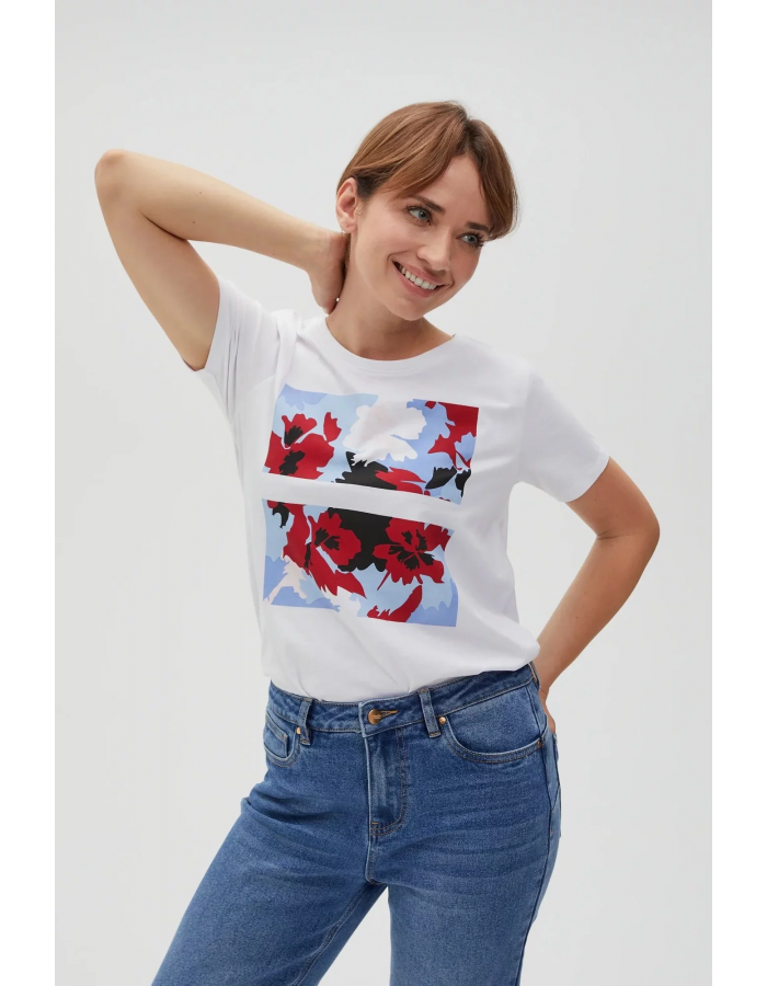 95% BAVLNA, 5% ELASTAN Bílá halenka je perfektní volbou pro ženy, které oceňují pohodlí a jednoduchost. Z kvalitní bavlny, hladké, bez vzoru, s potiskem na přední straně. Krátký rukáv a kulatý výstřih a volný střih zajistí pohodlí při nošení. Tričko je ideální pro každodenní nošení, pro ležérní styling. Lze jej kombinovat s džínami, sukní nebo šortkami. Ideální na procházku, setkání s přáteli nebo do kanceláře. Díky svému univerzálnímu designu se hodí k mnoha šatníkům a může se stát vaším oblíbeným základem.
