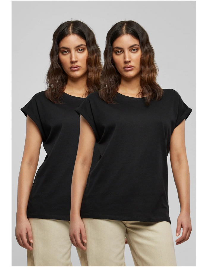 Tento set dámských triček obsahuje dvě trička ve stylovém jednoduchém designu. Trička mají krátké rukávy s ležérním ohrnutím a kulatý výstřih. Jsou vyrobena z měkkého a příjemného materiálu, který zajišťuje komfort během celodenního nošení. Tento set je ideální volbou pro každodenní nošení, ať už do práce, na procházku nebo na neformální setkání. Díky minimalistickému vzhledu se snadno kombinují s jakýmkoli stylem, od džínů po sukni.