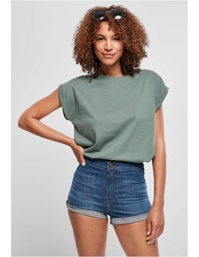 Dámské tričko s prodlouženým ramenem ve světle listové barvě