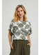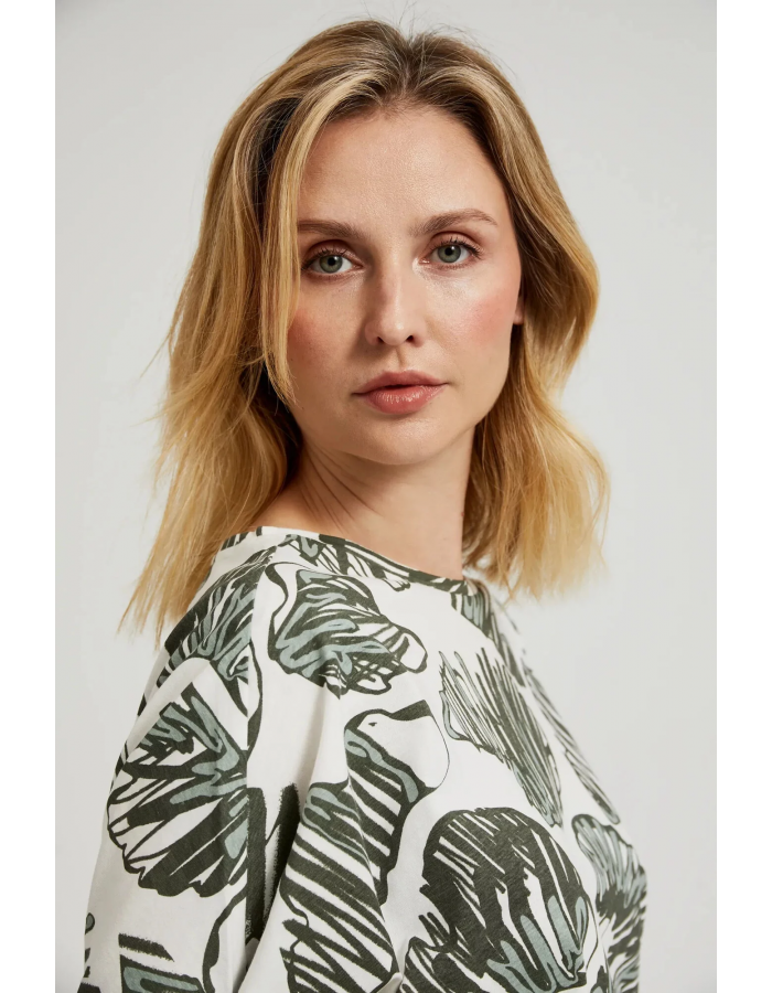 Dámské tričko s tropickým potiskem MOODO - olivová