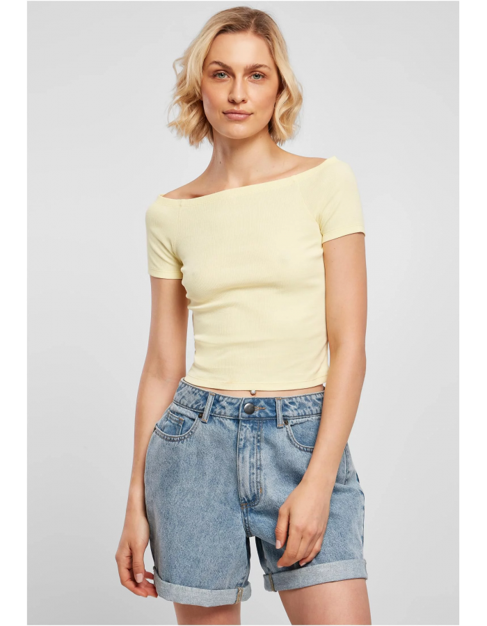 Dámské tričko Off Shoulder Rib soft-žluté 5XL