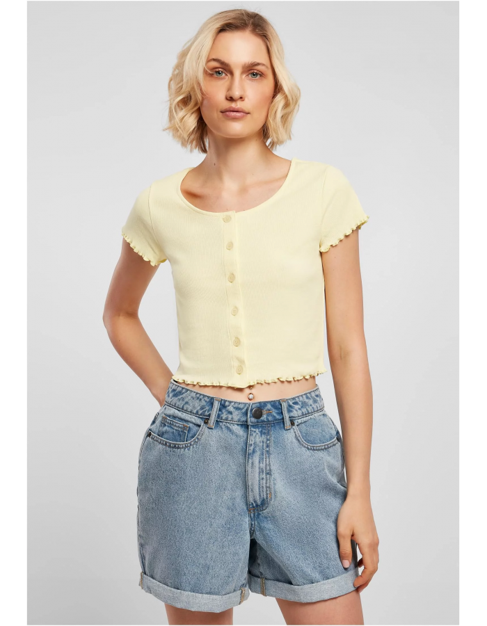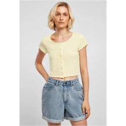 Dámské tričko se zapínáním na knoflíky a žebry měkké žluté barvy