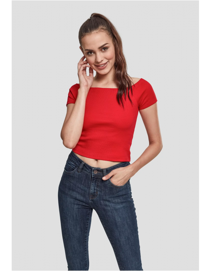 Dámské tričko s Off Shoulder Rib Fire červené XL
