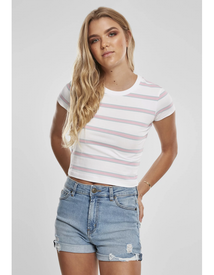 Dámské tričko Stripe Cropped Tee bílé/girlypink S