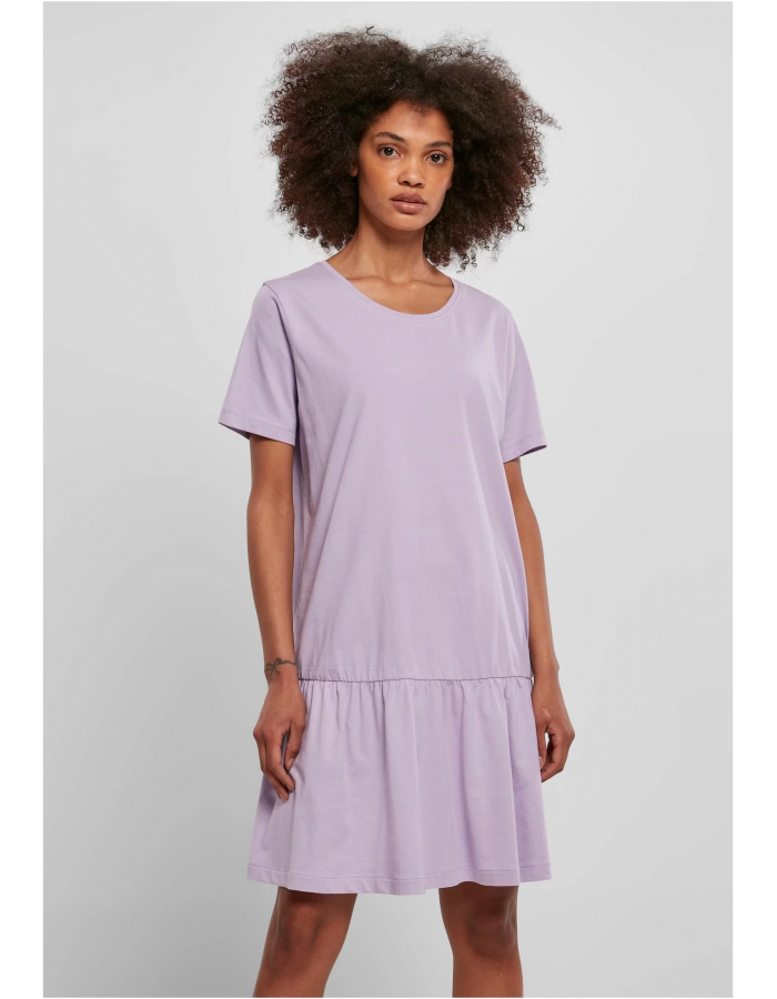 Široký střih a jednoduchý, ale efektní design tohoto dámského trička vypadá úžasně žensky. Krátké rukávy, volný střih i hluboký kulatý výstřih připomínají tvarem vyhlášeného trička. Volantový přístup sukně vytváří jemný akcent. Stejně snadný jako střih je materiál dámských šatů, který se skládá z hladkého single jersey.