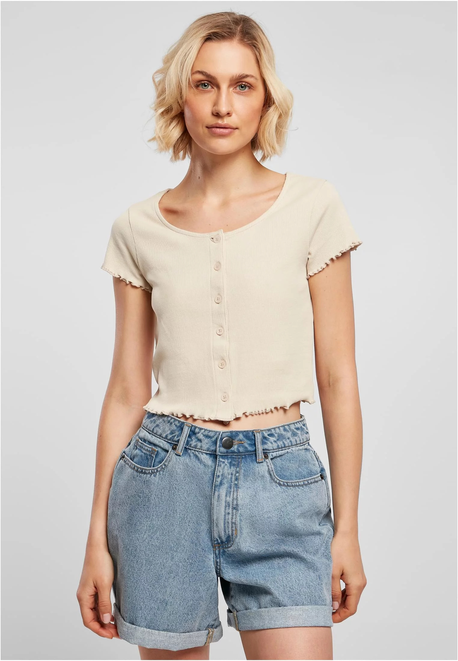 Dámské tričko z měkké mořské trávy Cropped Button Up Rib