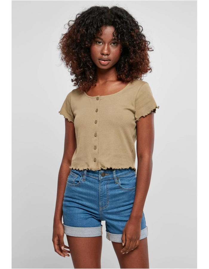 Dámské triko v khaki barvě se zapínáním na knoflíky
