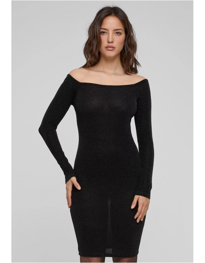 Tyto dámské šaty, které předvádějí vzrušující střih a jiskřivý třpytivý efekt, skutečně vyzařují kouzlo. Jsou bez ramínek a mají midi délku a dlouhé rukávy. Jsou vyrobeny z polyesteru a malého množství elastanu, což zajišťuje pohodlný slim střih.