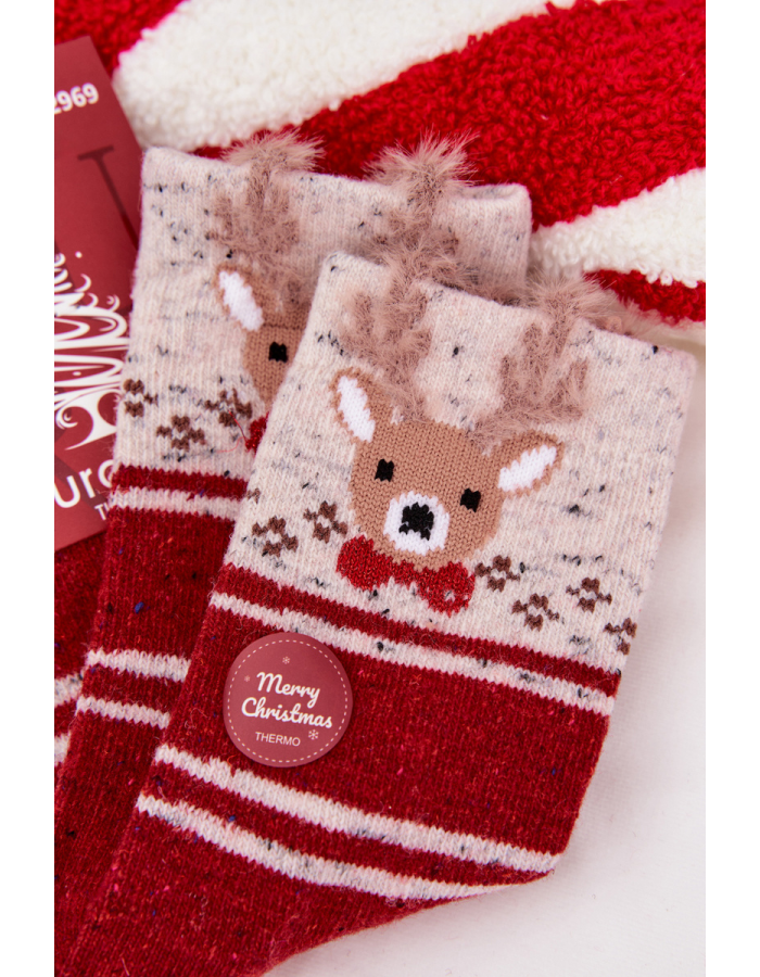 Roztomilé a mimořádně hřejivé dámské vánoční ponožky z měkké směsi s podílem alpaky. Kombinace červených pruhů a motivu soba vytváří typicky sváteční vzhled, který dokonale doplní zimní atmosféru. Jsou velmi příjemné na nošení, prodyšné a díky teplé přírodní vlně skvěle izolují i v chladných dnech.