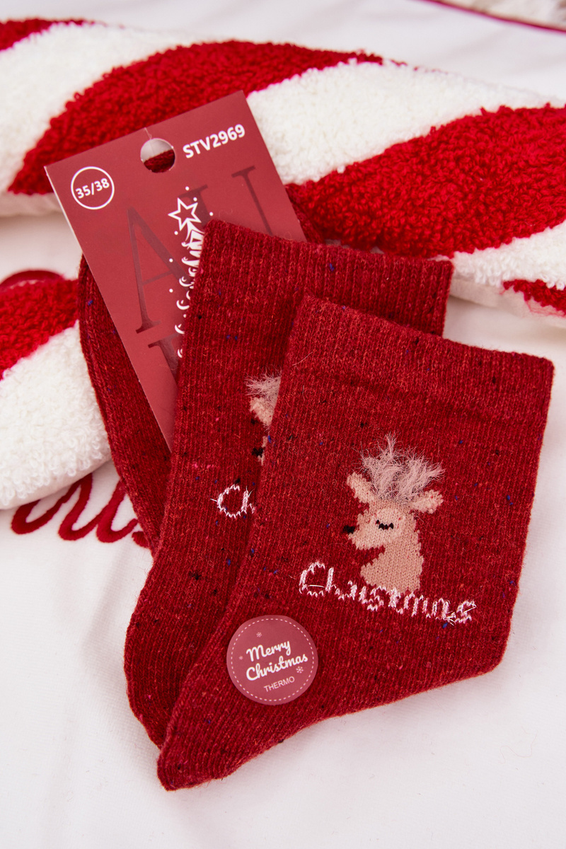 Hřejivé dámské vánoční ponožky v krásné červené barvě s roztomilým motivem soba. Díky podílu alpaky a vlny jsou mimořádně měkké, teplé a příjemné na nošení. Perfektní volba pro zimní období, kdy chcete udržet nohy v pohodlí a teple.