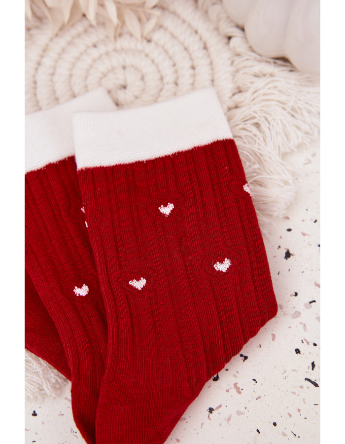 Veselé dámské vánoční ponožky v červené barvě s motivem bílých srdíček přinášejí hravý a sváteční vzhled. Vyrobené z měkkého a pružného materiálu, poskytují pohodlí po celý den. Ideální pro domácí pohodu, vánoční oslavy nebo jako originální dárek pro ženy.
