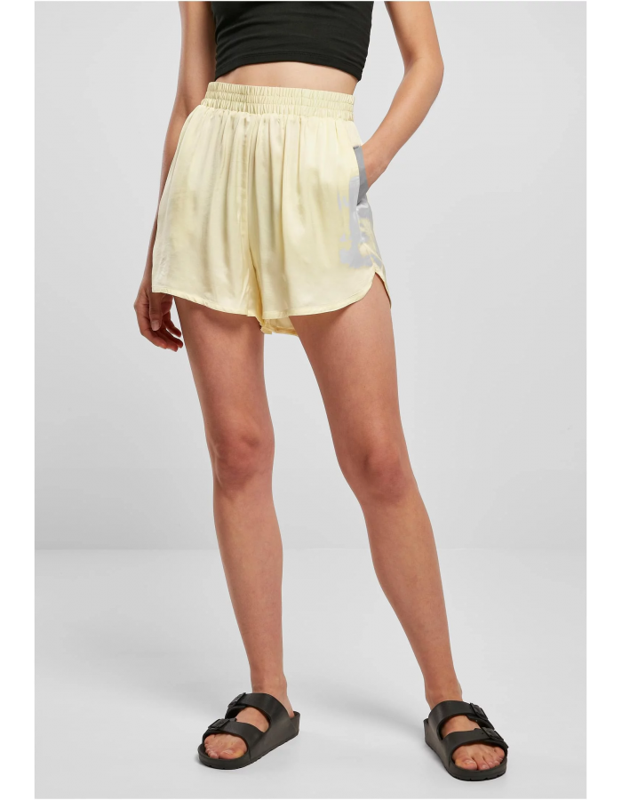 Tyto tepláky kombinují sportovní střih s elegantní látkou sestávající z třpytivého saténu. Výsledkem je autentický kousek. Vysoko sedící elastický pas je široký a doplňuje pohodlné nohavice zvýšeným bočním švem a mírným rozparkem. Teplé kalhotky jsou volného střihu.