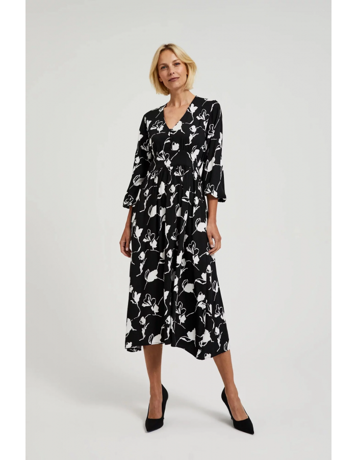 Dámské viskózové šaty s potiskem MOODO - černé Velikost: 38