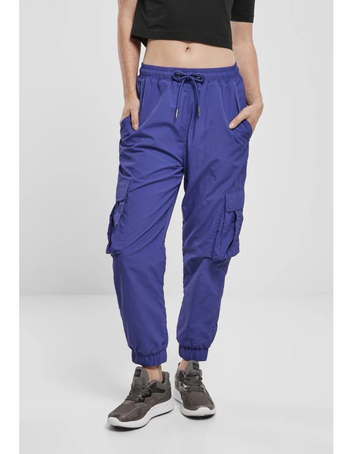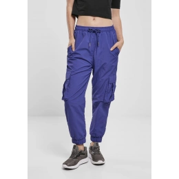 Dámské vlnité nylonové cargo kalhoty s vysokým pasem modrofialové