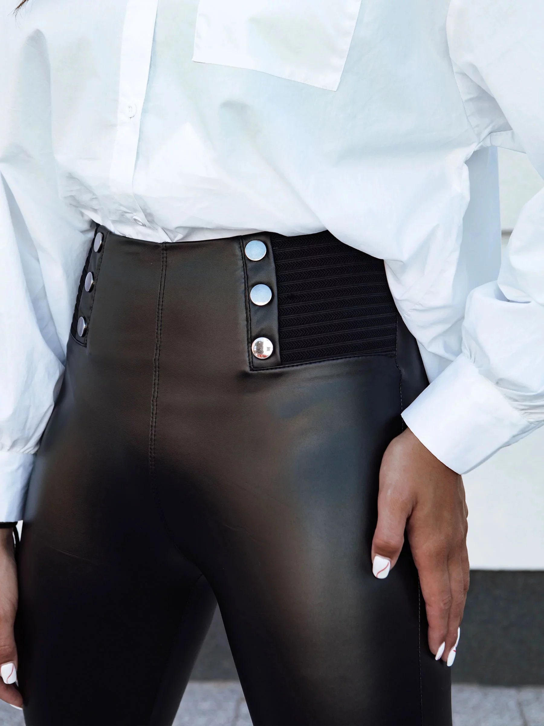 Vysoký pas a přiléhavý střih dokonale modelují postavu, zatímco elastický materiál zajišťuje pohodlí po celý den. Jemné detaily, jako jsou knoflíky, jim dodávají jedinečný charakter. To je skvělá nabídka pro každou příležitost – jak na běžný den, tak na večerní výlety.