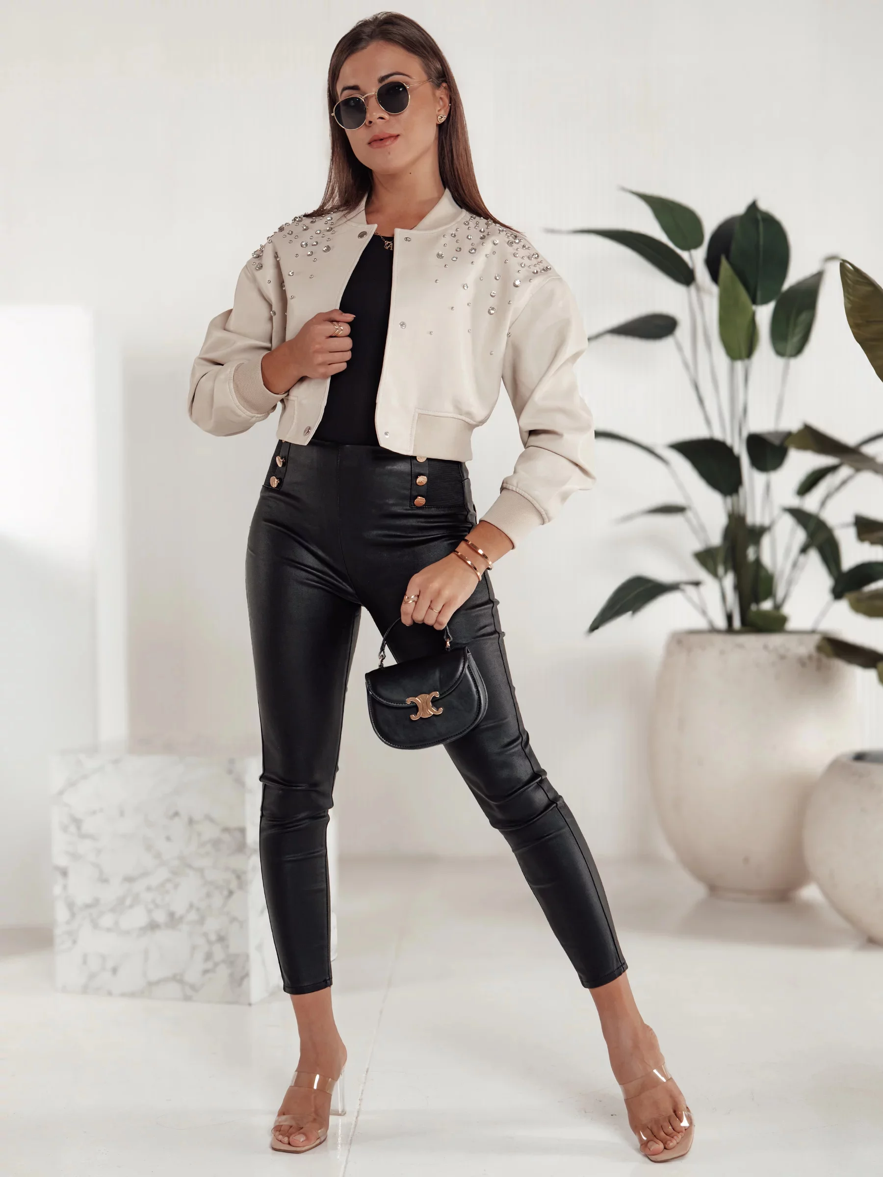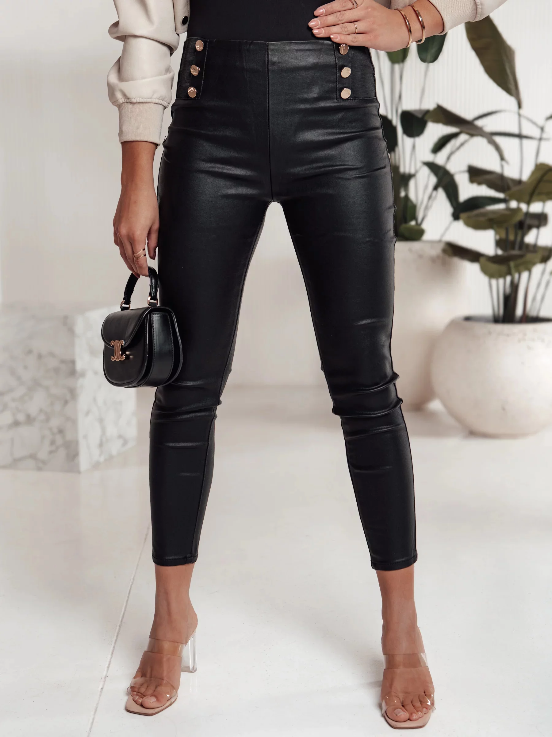 Stylové kalhoty s vysokým pasem jsou ideální volbou pro milovnice moderních, elegantních stylizací. Dokonale zvýrazňují postavu a materiál zajišťuje pohodlí po celý den. Přidání knoflíků na přední straně dodává originalitu a odlišuje tento model od ostatních. Ideální na každodenní nošení i na formálnější příležitosti. Vysoká kvalita zpracování zaručuje dlouhodobé používání a spokojenost s nákupem.
