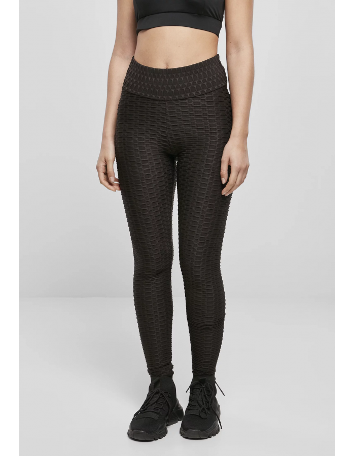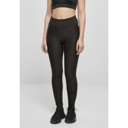 Tyto dámské legíny jsou vzrušujícími vrcholy městské módy! Materiál z polyesteru a elastanu je tvarován do efektního voštinového vzoru, který je zřetelně vyvýšený a nabízí také vzrušující 3D efekt. Legíny jsou přirozeně úzkého střihu a extrémně pohodlné na nošení díky vysokému podílu strečového materiálu. Kromě toho legíny sedí extra vysoko v pase a díky širokému elastickému pasu jsou ještě pohodlnější na nošení. Sexy detailem je sedlo přes hýždě, které umně zvýrazní každý dobře tónovaný zadek.