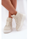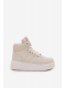 Vysoké béžové sneakersy na platformě skvěle vypadají s úzkými džíny, legínami nebo kratšími šaty, kde vynikne jejich výrazná silueta.
