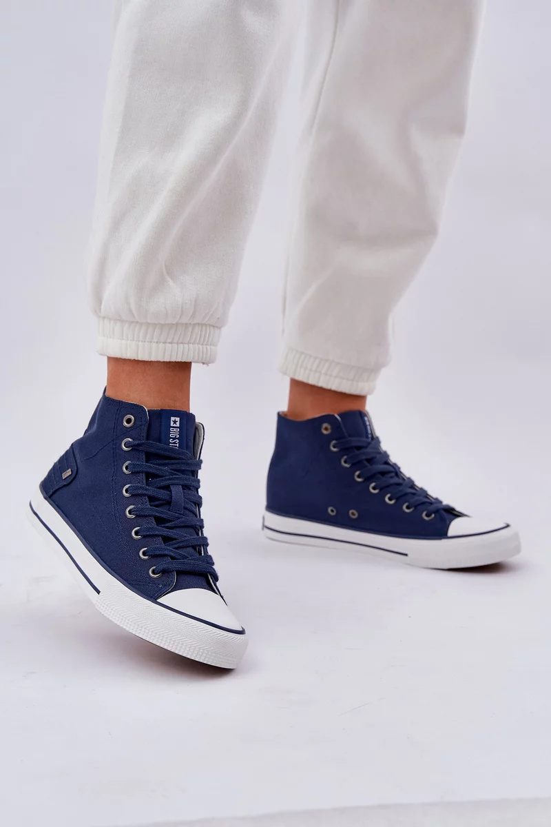 Nestárnoucí klasika v moderním provedení – to jsou vysoké dámské trampky Big Star v tmavě modré barvě. Stylový plátěný svršek a ikonický střih nad kotník zaručují pohodlí i univerzální využití. Ideální volba na volný čas, do města nebo do školy.