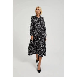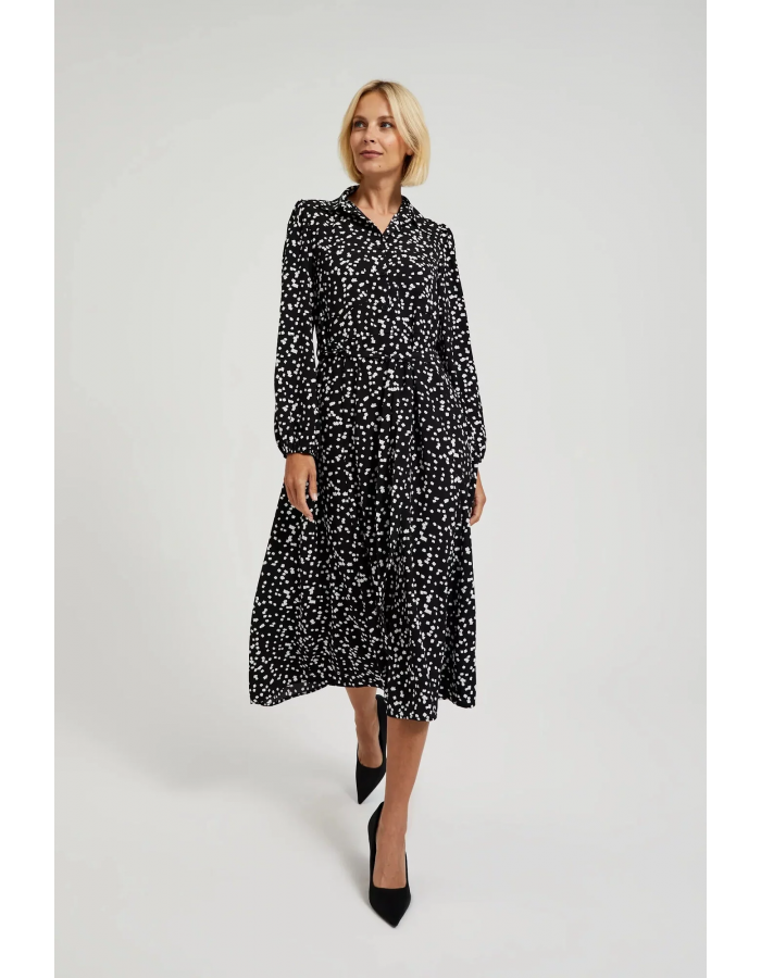 Dámské vzorované midi šaty s dlouhým rukávem MOODO - černé Velikost: XXL