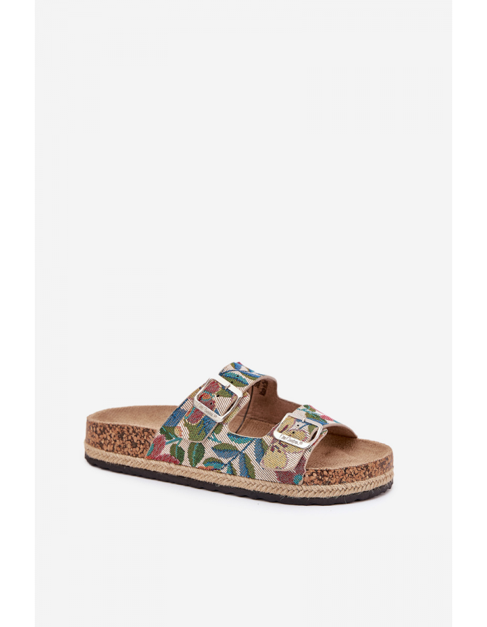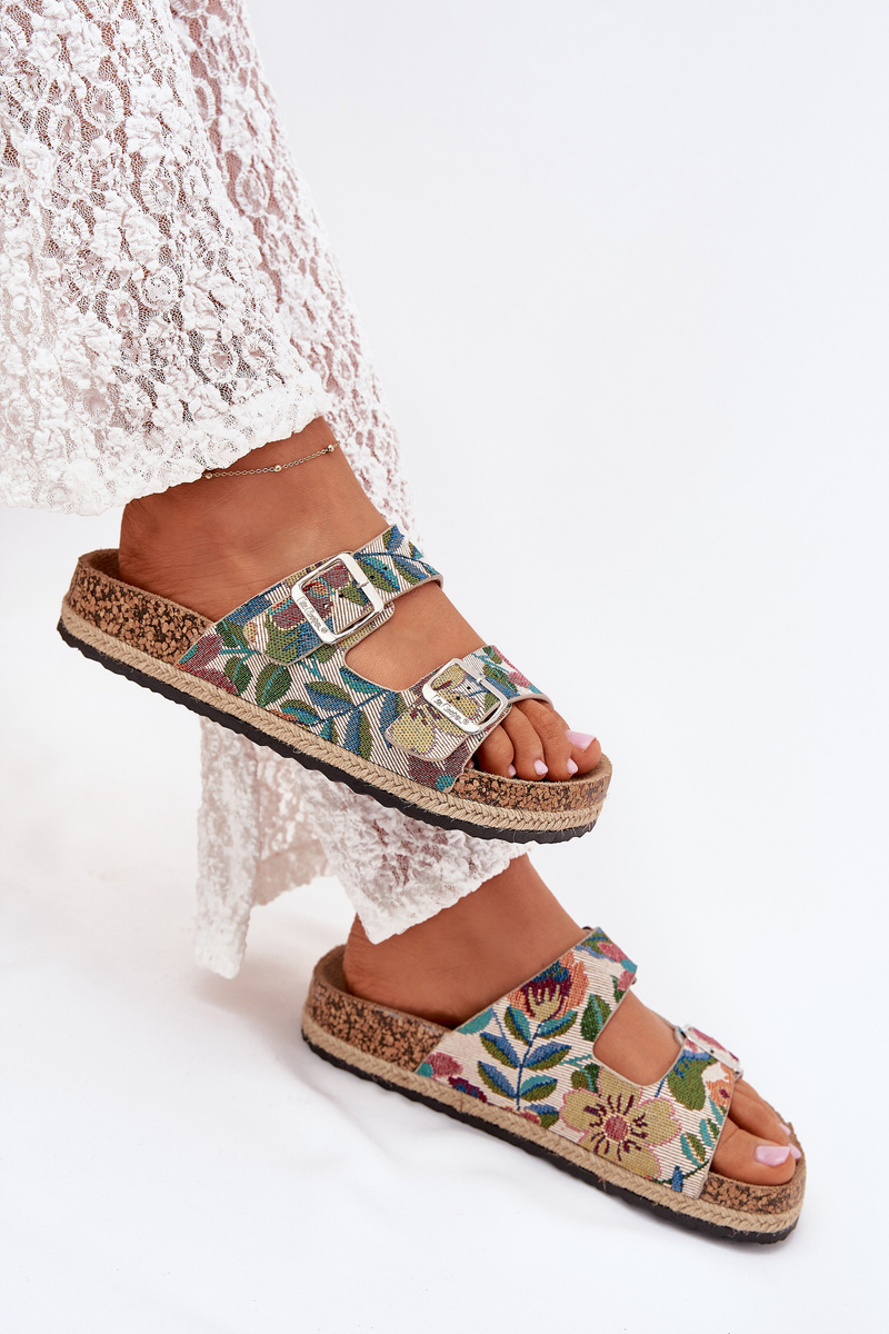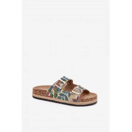 Model nabízí ideální kombinaci pohodlí a designu. Korková platforma dodává lehkost a stabilitu, zatímco nastavitelné přezky umožňují perfektní přizpůsobení noze. Barevný vzor dodává pantoflím hravý a moderní vzhled, který snadno oživí letní i volnočasové outfity. Lehké a pevné materiály zajišťují pohodlné celodenní nošení.