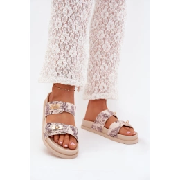 Dámské pantofle Sorina v elegantním béžovém provedení s vzorem spojují pohodlí s módním designem. Zvýšená platforma opticky prodlužuje nohy a zároveň poskytuje stabilní a komfortní došlap. Stylový vzor dodává pantoflím originální vzhled, který snadno oživí letní outfity a přidá vašemu looku jedinečný akcent.