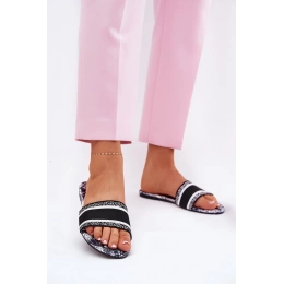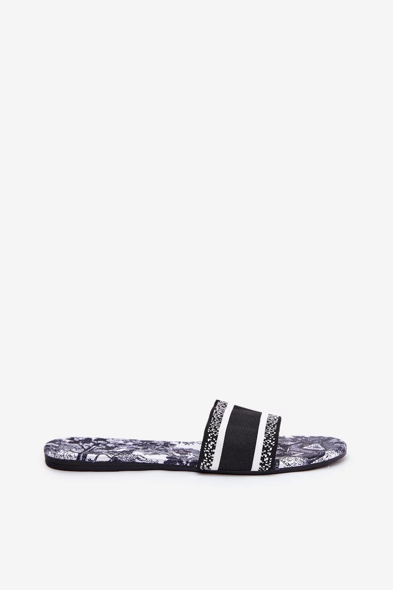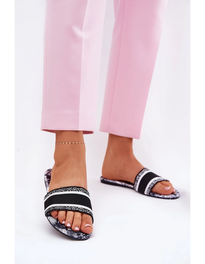 Černé vzorované pantofle skvěle doplní světlé i tmavé outfity – zkombinujte je například s džíny, sukní či šaty pro ležérní letní look.