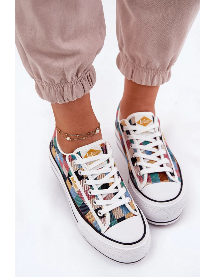 Dámské trampky Lee Cooper na platformě v multibarevném provedení jsou výrazným volnočasovým modelem, který oživí i jednoduchý outfit. Vzorovaný svršek dodává botám originální vzhled a díky platformě působí silueta moderně a trendově, zároveň platforma nabídne stabilní došlap při chůzi. Trampky se skvěle hodí do města, na výlety i na cestování, když chcete pohodlí a zároveň nápaditý detail. Multikolor design nejlépe vynikne v kombinaci s jednobarevným oblečením, ale snadno ho sladíte i s džínovinou a neutrálními odstíny.