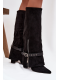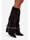 Wsuwané dámské kozačky nad koleno jsou elegantní a stylovou volbou, která spojuje klasiku s moderním akcentem. Model se špičatou špičkou a sloupkovým podpatkem jemně zeštíhluje siluetu, zatímco svršek přecházející přes podpatek dodává botám výjimečný charakter.