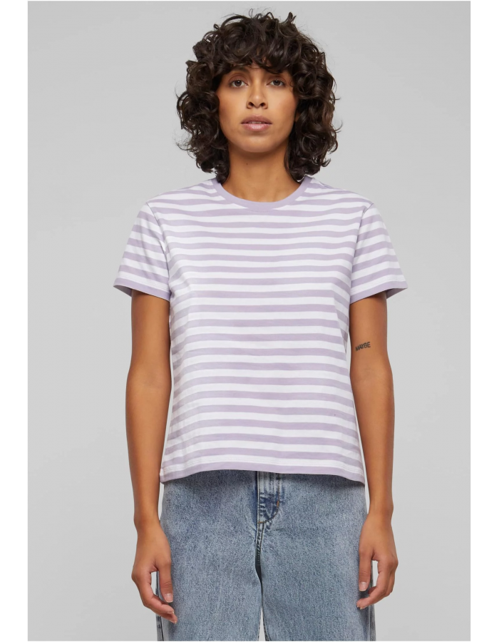 Dámské základní pruhované tričko bílé/fialové Velikost: XL