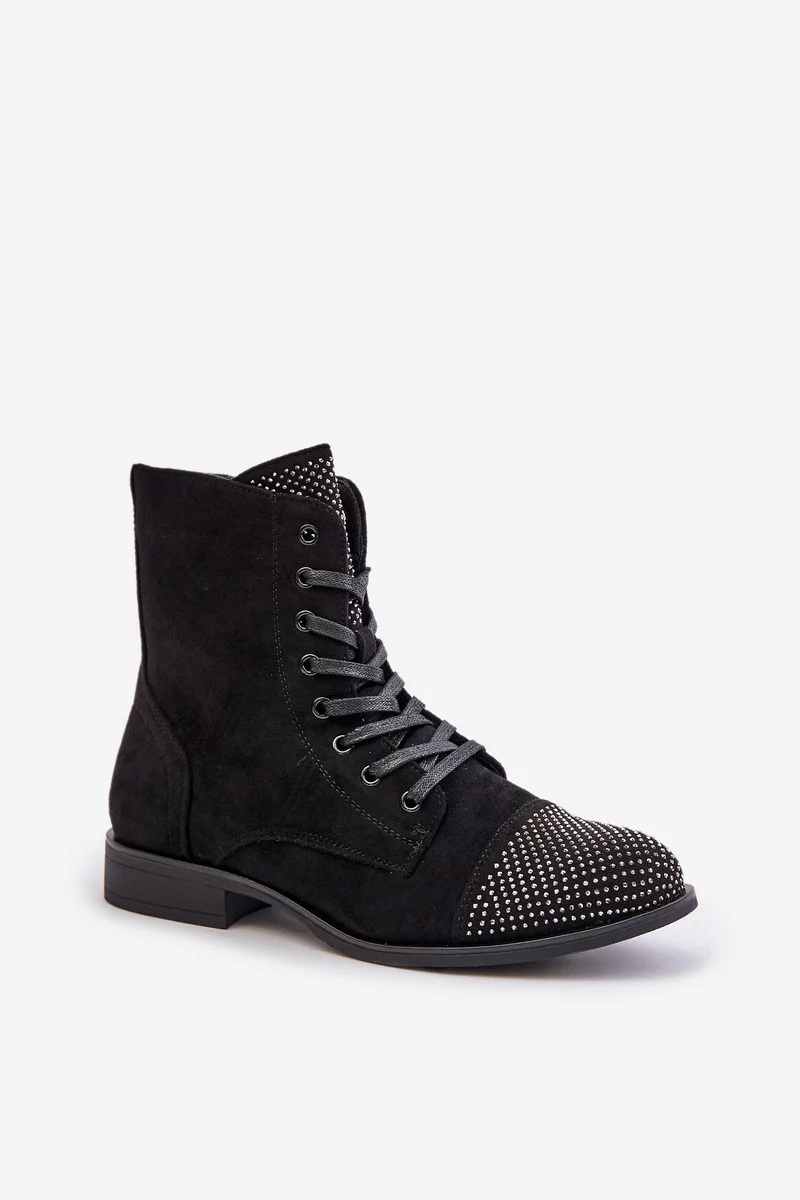 Stylové kotníkové boty Ellieo v černém eko semišovém provedení kombinují pohodlí a elegantní vzhled. Botky jsou zateplené, takže udrží nohy v teple během chladnějších dní. Nízký podpatek zajišťuje stabilitu a pohodlnou chůzi, zatímco dekorativní detaily dodávají botám módní a sofistikovaný akcent. Praktický boční zip usnadňuje obouvání a svlékání, ideální pro každodenní nošení i volnočasové aktivity.