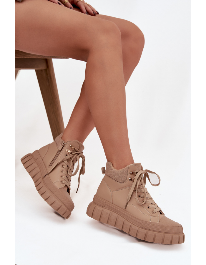 Stylové dámské trapery Carenna v camel odstínu z ekologické kůže kombinují pohodlí s moderním vzhledem. Model je zateplený, ideální pro chladnější dny, a osazený platformou, která dodává stabilitu a komfort při chůzi.