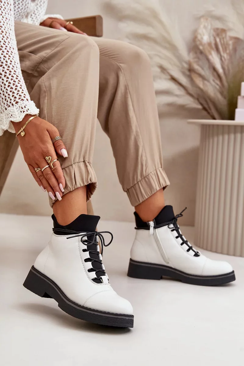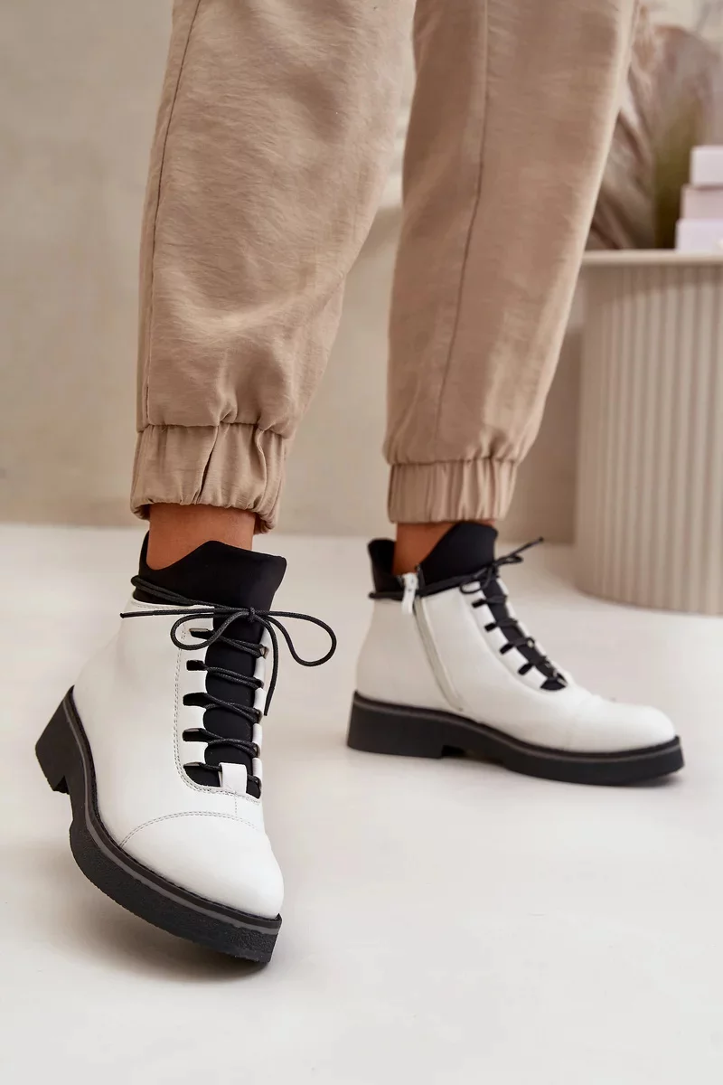 Dámské kotníkové boty od značky Jezzi. Vyrobeno z eko kůže. Vnitřek je zateplený příjemnou obuvnickou dekou, která zajišťuje teplo i v chladnějších dnech a zároveň je příjemná pro nohy. Zapínání na zámek umožňuje rychlé a snadné nasazování a sundávání. Bez ohledu na příležitost, tyto kotníkové boty budou skvělým doplňkem tvého šatníku, dodávajíc mu nadčasový šmrnc a pohodlí. Při výběru velikosti se prosím řiďte tabulkou velikostí.