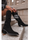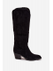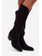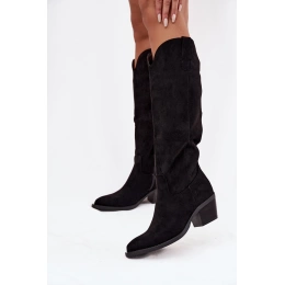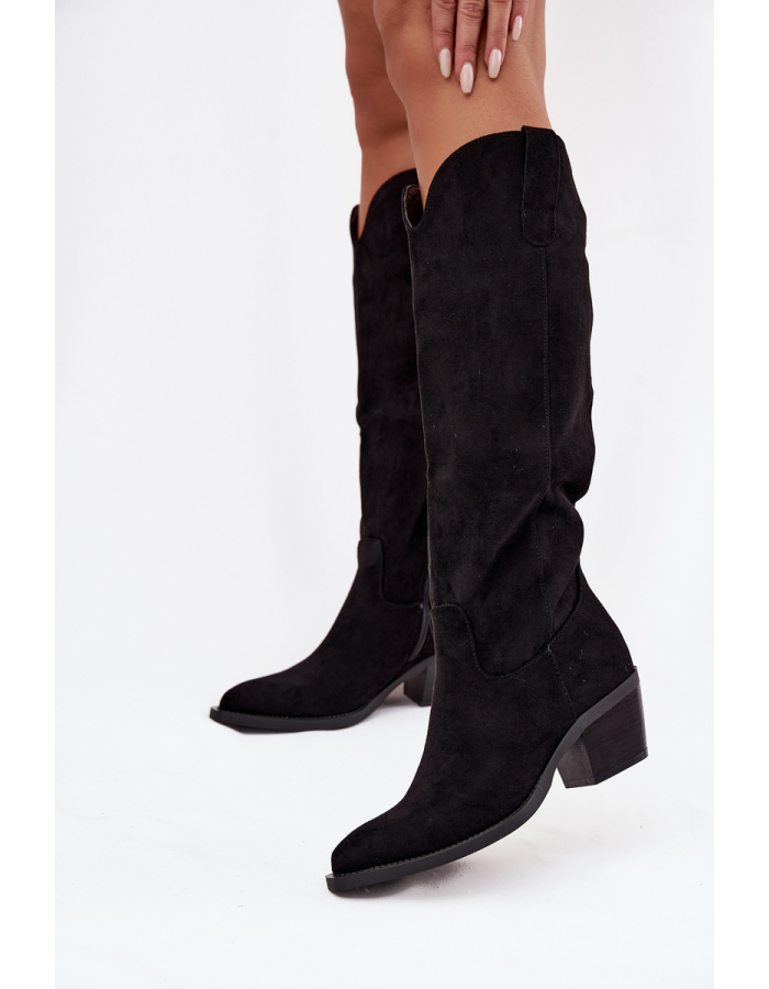 Stylové dámské kozačky Esmira v černé barvě kombinují pohodlný podpatek s módním kovbojským designem. Eko zamsz působí jemně a zároveň odolně, zatímco zateplení uvnitř bot udrží nohy v teple během chladných dnů. Postranní zip umožňuje rychlé a pohodlné obouvání a mačkaná horní část dodává botám originální detail.