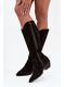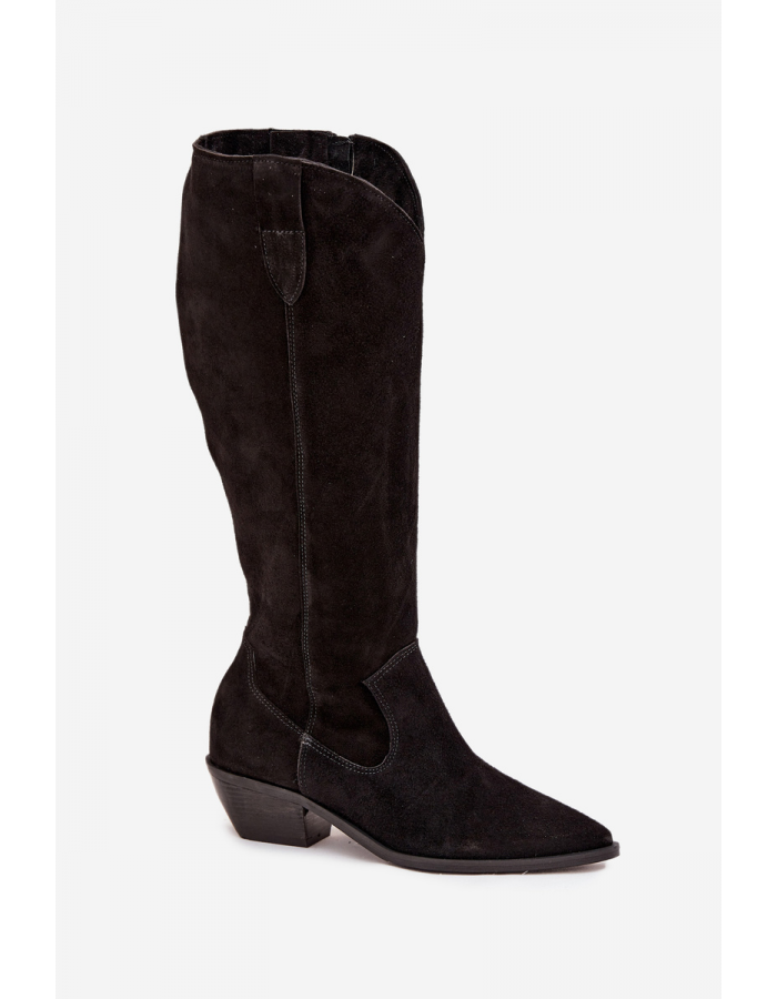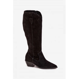 Stylové dámské kozačky Zazoo 4225 v černém odstínu kombinují trendy kovbojský design s pohodlím. Zateplený vnitřek udržuje nohy v teple a semišový svršek dodává botám elegantní a odolný vzhled.