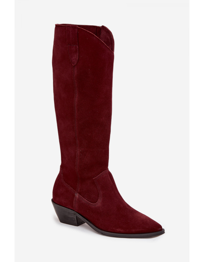 Stylové dámské kozačky Zazoo v bordó odstínu kombinují trendy kovbojský design s komfortem. Zateplený vnitřek udržuje nohy v teple a semišový svršek dodává botám elegantní a odolný vzhled.