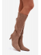 Stylové dámské kozačky Arelisse z eko semiše v tmavě béžovém odstínu s teplou podšívkou — ideální pro chladnější dny. Jehlový podpatek dodá elegantní a ženský vzhled a uzavřená špička společně se zateplením ochrání nohy před chladem. Kozačky jsou navrženy tak, aby poskytovaly pohodlí i stylový vzhled zároveň.