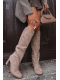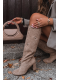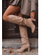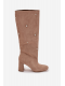 Dámské kozačky z eko semiše jsou stylovým modelem pro podzimní a zimní sezónu. Jsou posazené na stabilním podpatku ve tvaru sloupku, který zajišťuje pohodlí při chůzi a zároveň jemně zvýrazňuje postavu. Kulatá špička dodává obuvi klasický vzhled, zatímco vnitřní zateplení obuvnickou plstí poskytuje teplo i v chladnějších dnech. Pozornost přitahují ozdobné detaily na svršku, které dodávají modelu výjimečný charakter. Univerzální kozačky, které skvěle doplní jak každodenní, tak elegantnější ženské outfity. Při výběru velikosti se prosím řiďte tabulkou velikostí.