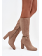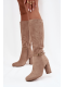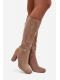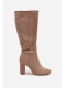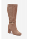 Dámské zateplené kozačky na sloupkovém podpatku se zlatou přezkou Seraphine – béžové Velikost: 40