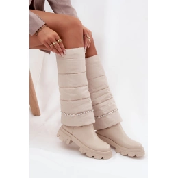 Dámské kozačky vyrobené z kombinace eko kůže a textilního materiálu jsou stylovou volbou pro chladnější dny. Snadno obouvací střih zajišťuje pohodlí při nazouvání. Vnitřek zateplený obuvnickou plstí poskytuje teplo a komfort při nošení. Kulatá špička podtrhuje klasický charakter obuvi, zatímco jemné korálky tvoří elegantní detail, který dodává modelu výjimečný půvab. Jedná se o módní a pohodlné kozačky, které skvěle doplní každodenní outfity.