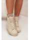 Stylové dámské tenisky Big Star v teplém béžovém odstínu kombinují ležérní vzhled s praktičností na chladnější dny. Tento model v sobě spojuje komfort městských tenisek s funkčností zimní obuvi díky vnitřnímu zateplení z hebkého kožíšku. Vyšší platformová podrážka nejen opticky prodlužuje postavu, ale zároveň chrání před chladem od země. Textilní svršek doplňuje decentní branding a pevné šněrování pro ideální přizpůsobení.