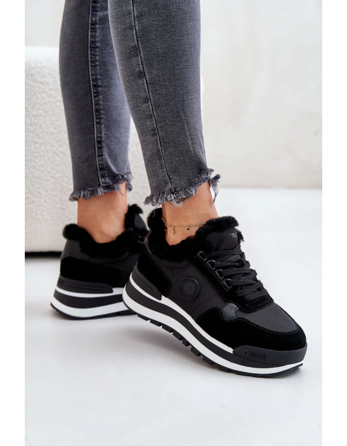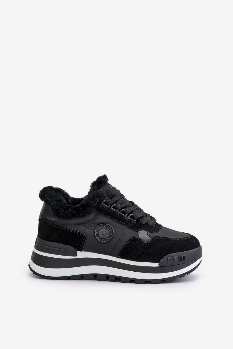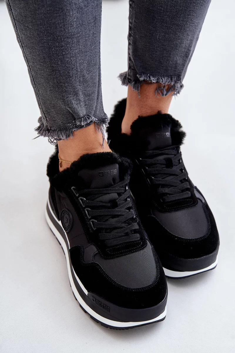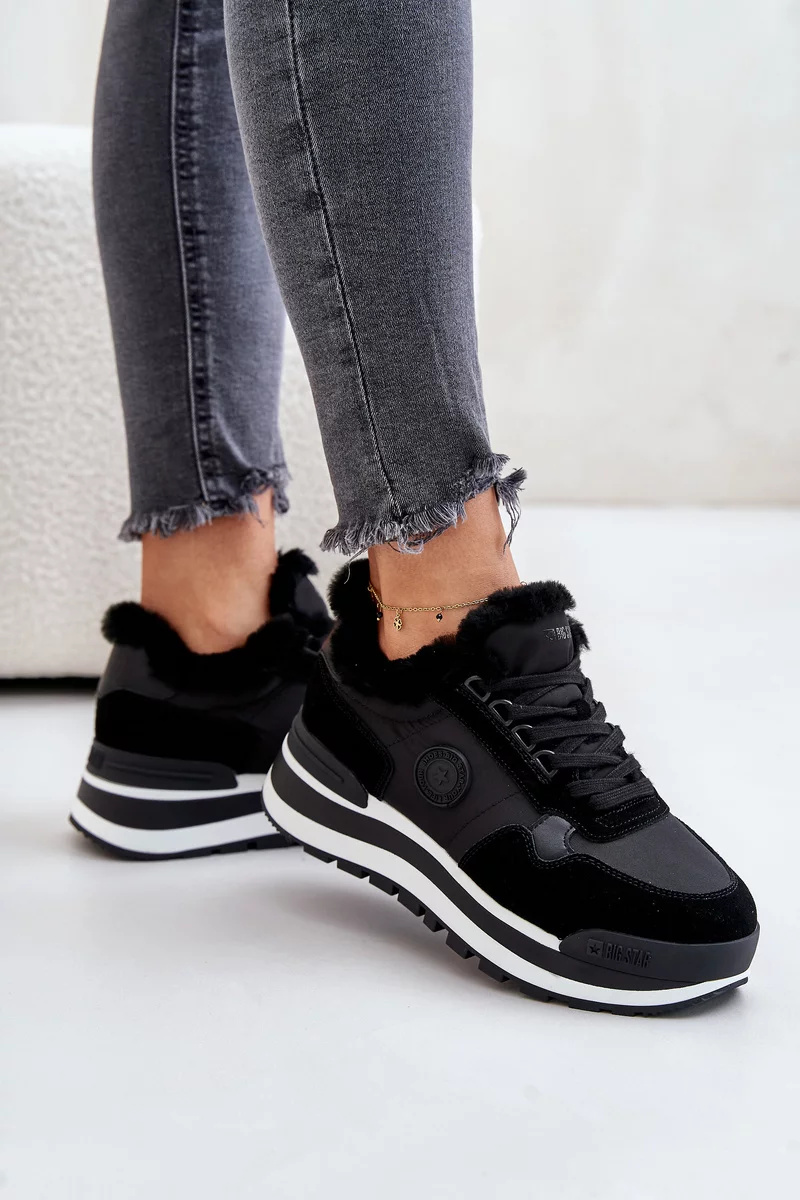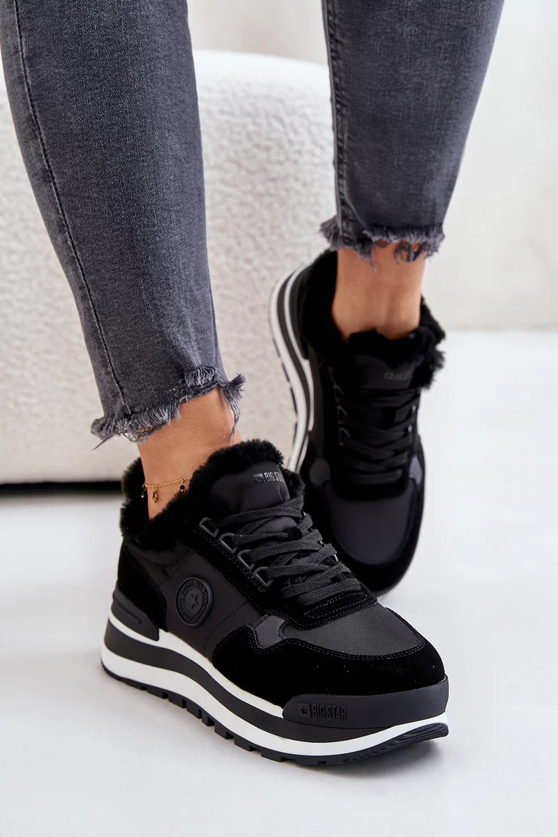 Dámské tenisky od značky Big Star. Vestavěné na platformě. Vyrobené z kombinace semiše a tkaniny, což jim dodává jedinečný styl. Zateplené kožíškem, skvěle se hodí do chladnějších dnů. Šněrování zajistí ideální přizpůsobení noze. Ideální na podzimní a zimní sezónu! Při výběru velikosti se prosím řiďte tabulkou velikostí.