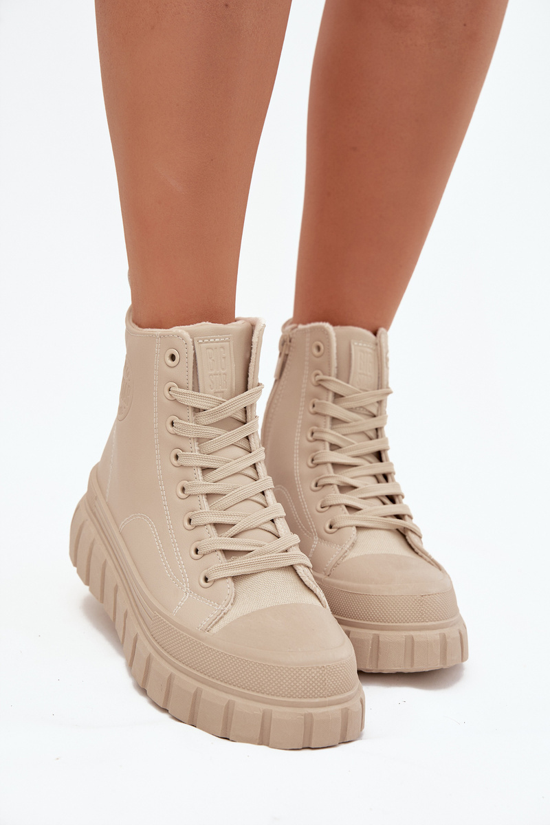 Stylové dámské tenisky Big Star na platformě v béžovém odstínu s hřejivým vnitřním zateplením. Ideální volba pro pohodlí a trendový vzhled i v chladnějším období.