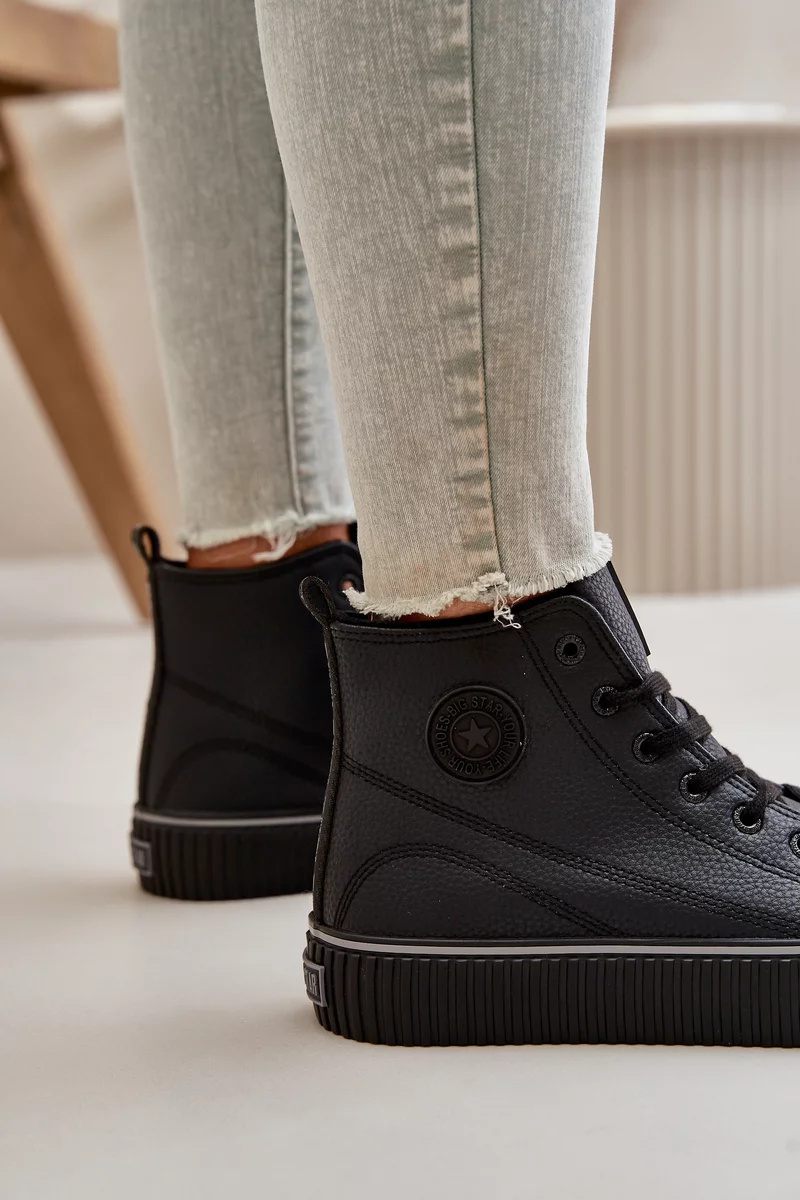 Dámské tenisky značky BIG STAR jsou módní volbou pro každou příležitost. Vyrobené z eko kůže, jsou osazeny na pevné platformě z gumy, což zajišťuje pohodlí a styl. Šněrovací a s vysokou holení sahající nad kotník, tyto boty jsou zateplené obuvnickou dekou, což zaručuje teplo v chladnějších dnech. Zpevněná pata jim dodává odolnost. Zveme vás k objevení celé kolekce obuvi značky BIG STAR. Při výběru velikosti se prosím řiďte tabulkou velikostí.