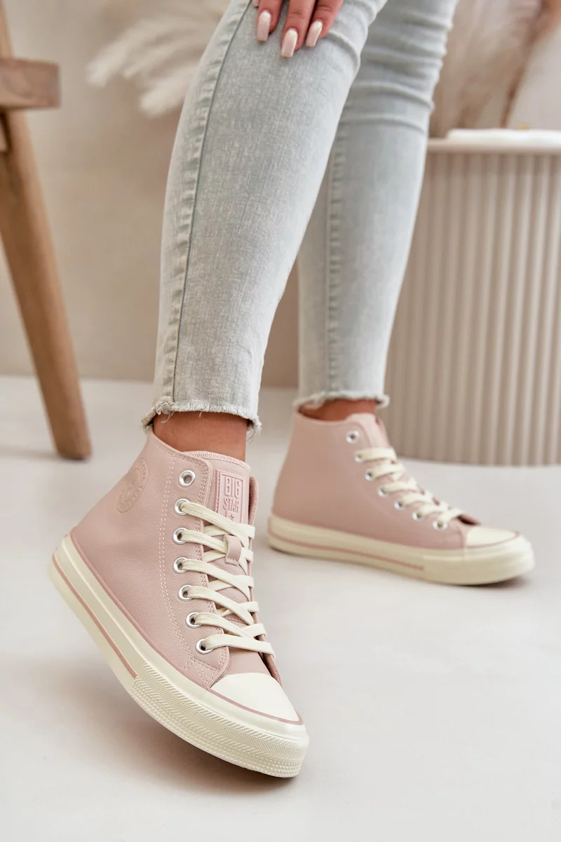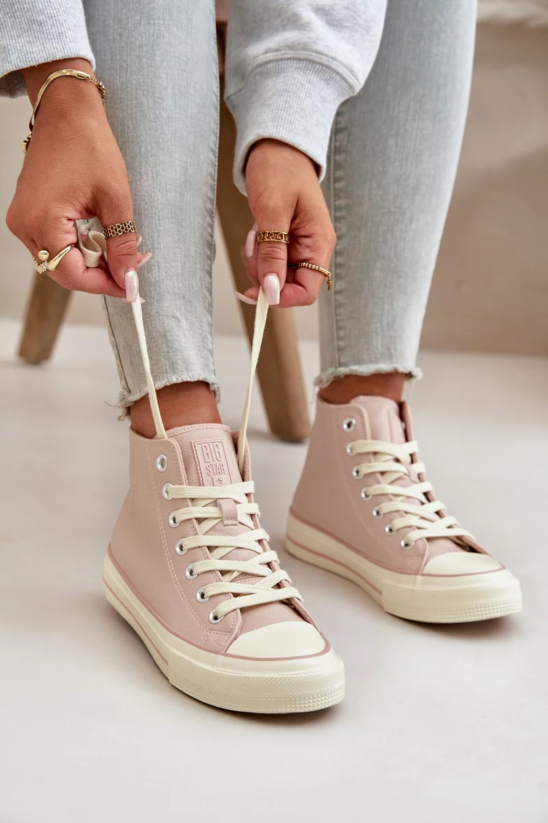 Dámské tenisky od značky BIG STAR s vysokým svrškem. Vyrobeno z eko kůže. Osazené na podrážce z gumového materiálu. Zaoblené špičky. Střed zateplený obuvnickou dekou. Určitě si prohlédněte celou naši kolekci bot značky BIG STAR. Při výběru velikosti se prosím řiďte tabulkou velikostí.