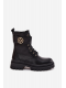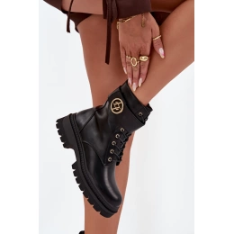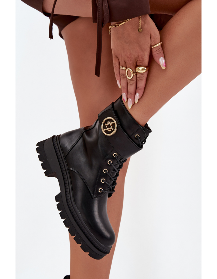 Model je šněrovací a se zipem, což umožňuje perfektní přizpůsobení noze. Na boku svršku, na pásku, se nachází dekorativní zlatý detail, který podtrhuje jedinečný vzhled. Vnitřek je zateplený plyšovou vložkou, takže boty udrží nohy v teple během zimních dní.