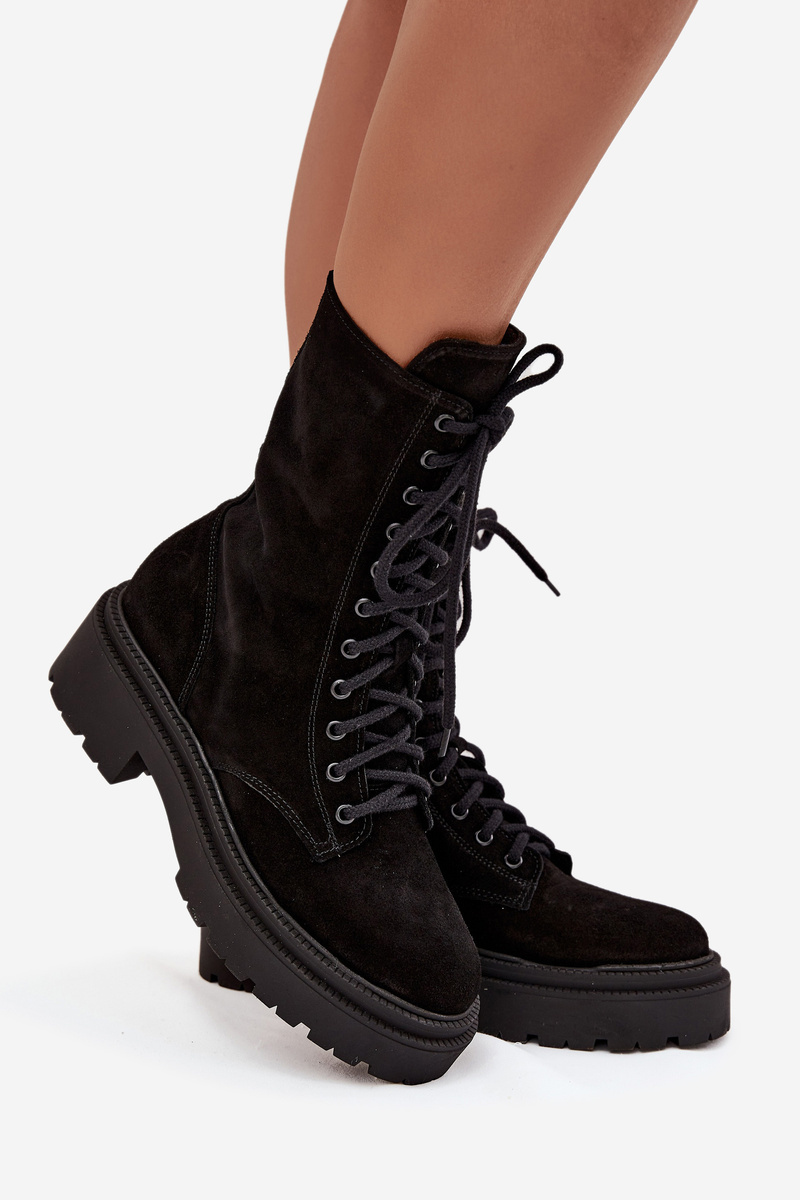 Boty jsou osazeny masivní platformou s plochým podpatkem, což zajišťuje stabilitu a komfort při chůzi, a zaoblená špička přidává klasický a nadčasový vzhled. Vnitřní zateplení skvěle chrání proti chladu během podzimní a zimní sezóny.